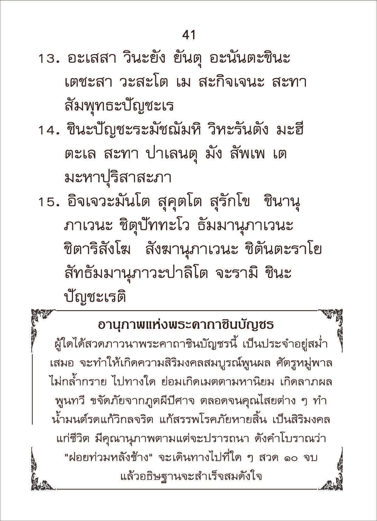 เป็นอุบายที่ทำให้เด็กๆ เกิดความสนใจที่จะเรียนรู้ธรรมะตั้งแต่เยาว์วัย บทสวดมนต์ศักดิ์สิทธิ์ คาถาชินบัญร พร้อมทั้งคำอธิษฐาน 10 ประการที่จะทำให้จิตใจตั้งมั่นอยู่ในความดี ตั้งตนอยู่ในความไม่ประมาทในชีวิต อันจะทำให้เข้าใกล้เส้นทางดับทุกข์ได้อย่างแท้จริง